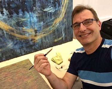 Avocat au Venezuela, sa passion pour l'art ne l'a jamais quitté et il est devenu collectionneur. Achetez de jeunes artistes vénézuéliens et des peintures et œuvres d'art françaises. Il est amené à quitter son pays natal pour la terre de son cœur, la France, où sa passion pour la création l'atteint. Il s'inscrit à la Sorbonne pour suivre des cours. Au vu de son talent, ses professeurs d'arts plastiques l'encouragent à débuter sa vie de peintre professionnel. La peinture acrylique, sur toile ou sur papier, permet de s'exprimer librement, plus que tout autre médium. En effet, cela lui permet de montrer la lumière, la profondeur et la texture, trois principes indissociables de sa démarche artistique. Il peint intuitivement, plaçant ses sentiments les plus intimes sur l'objet extérieur représenté par la toile à la manière de Kandinsky. L'utilisation du mouvement et de ses propres sensations révèle une abstraction dans laquelle chacun peut se retrouver. Cette idée est essentielle pour l'artiste qui demande au spectateur de prendre le temps de s'immerger dans l'œuvre et de laisser résonner en lui l'écho de cette vibration émotionnelle.